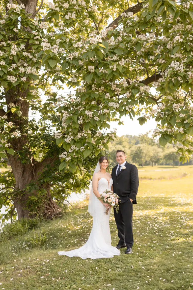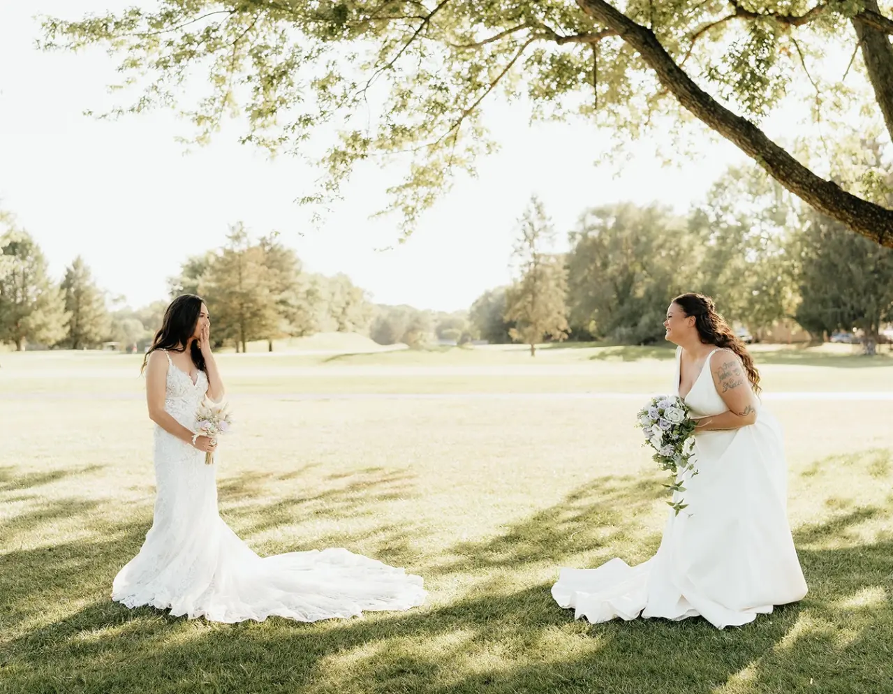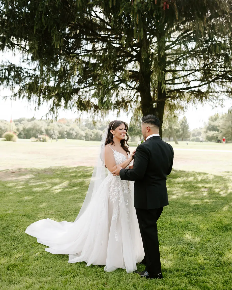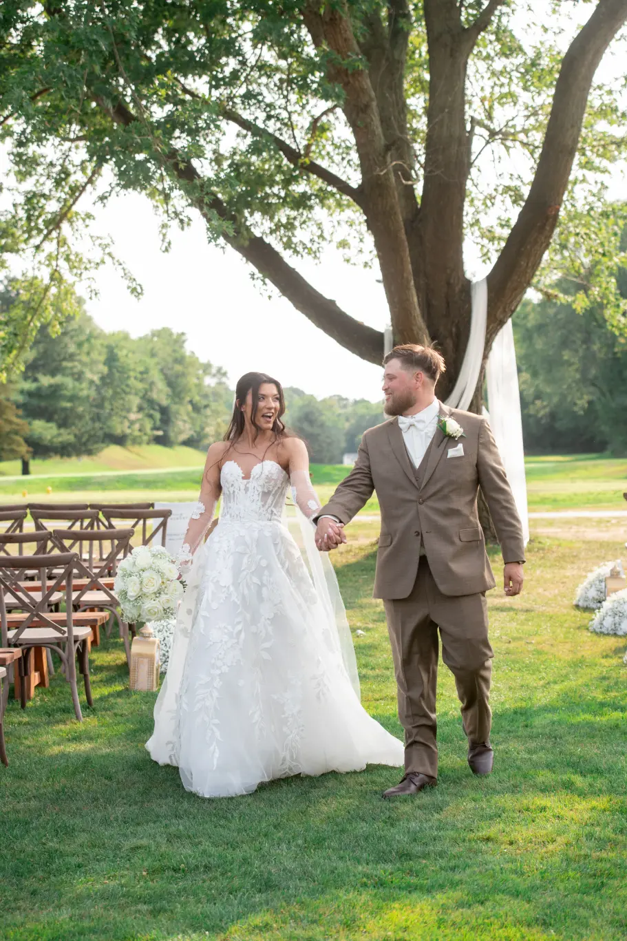 Valleybrook offers two stunning outdoor ceremony settings: Magnolia Lane, a tree-lined aisle framed by seasonal blooms, and Vows at The V, where couples say “I do” beneath our signature tree overlooking the course.